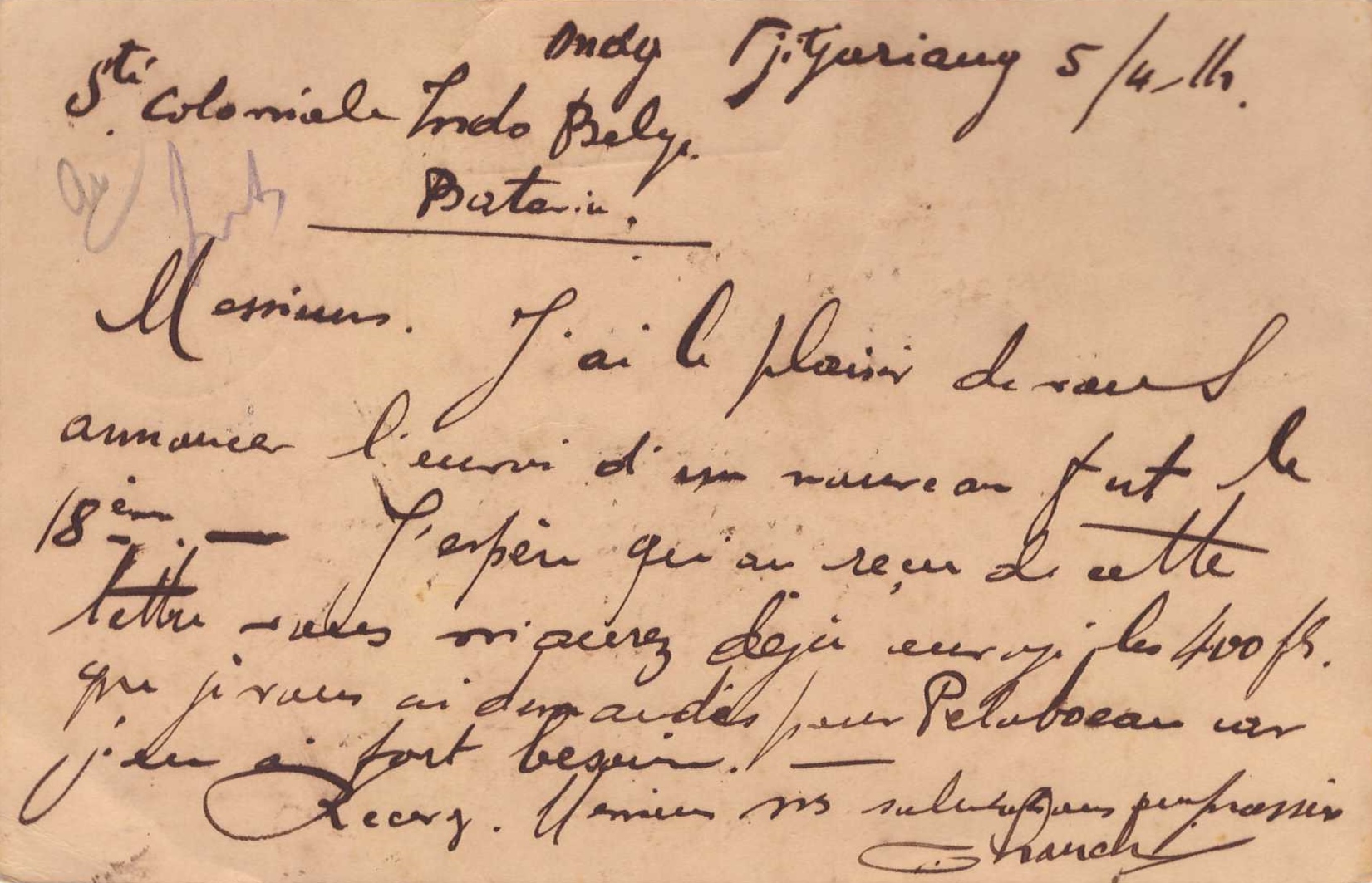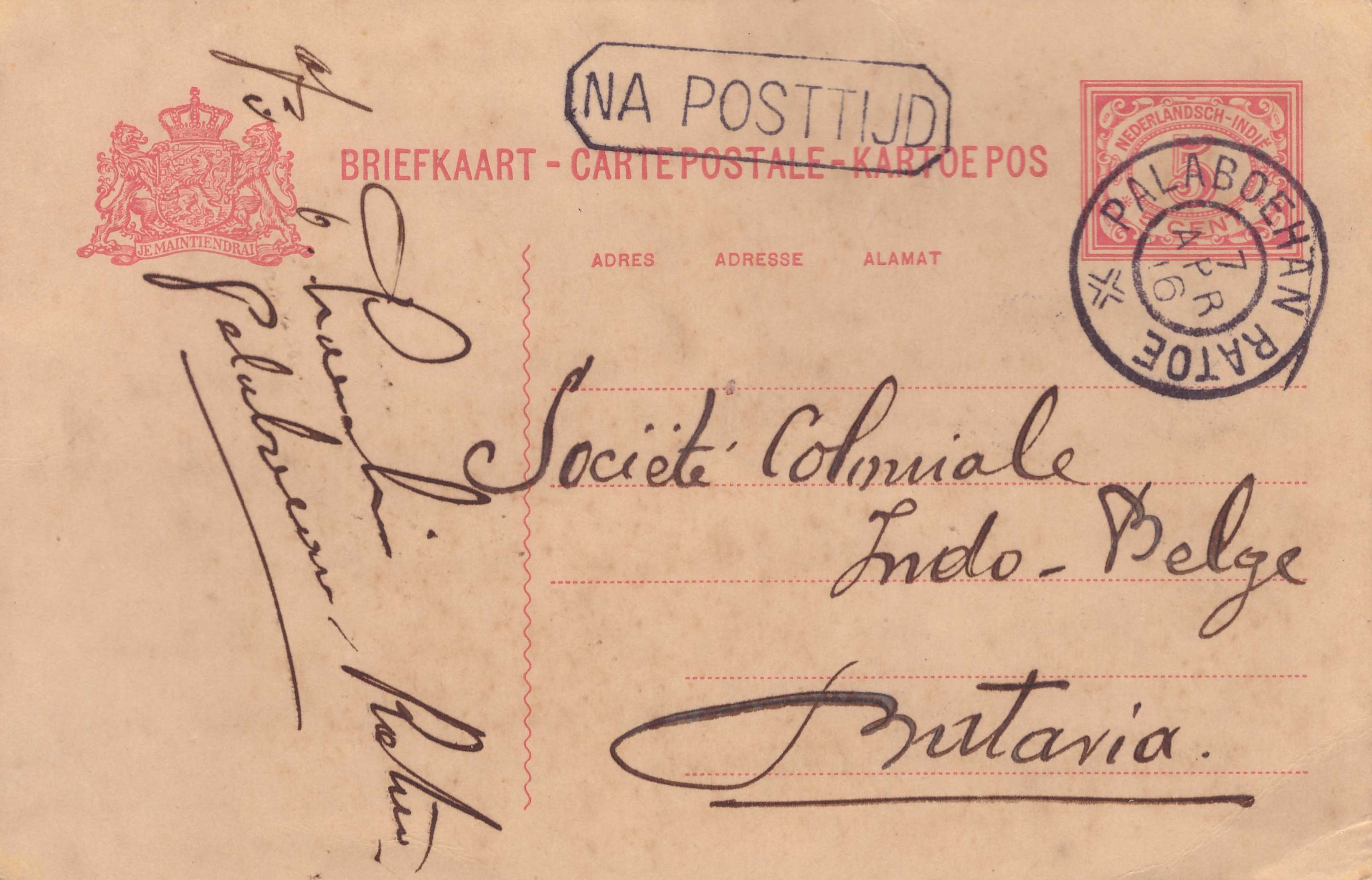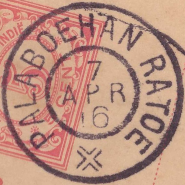 Pelaboehanratoe, zie Plaboeanratoe Plaboeanratoe, (O), res. Preanger Reg., Z.W. Tjibadak 1985 blz 308 23. Kab. Sukabumi 21. Kecm. Pelabuhan Ratui kpp 43164 in Verzameling Circulaires 1914-1917: Hulppostkantoor Pelaboehanratoe f 3,50 /mnd |